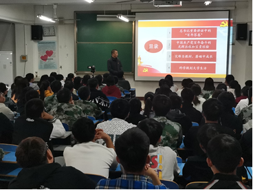 10月18日晚,电子信息与电气工程公司党总支书记李红安在A07-209教室,为2021级电子信息工程专业150余名员工讲思政课。