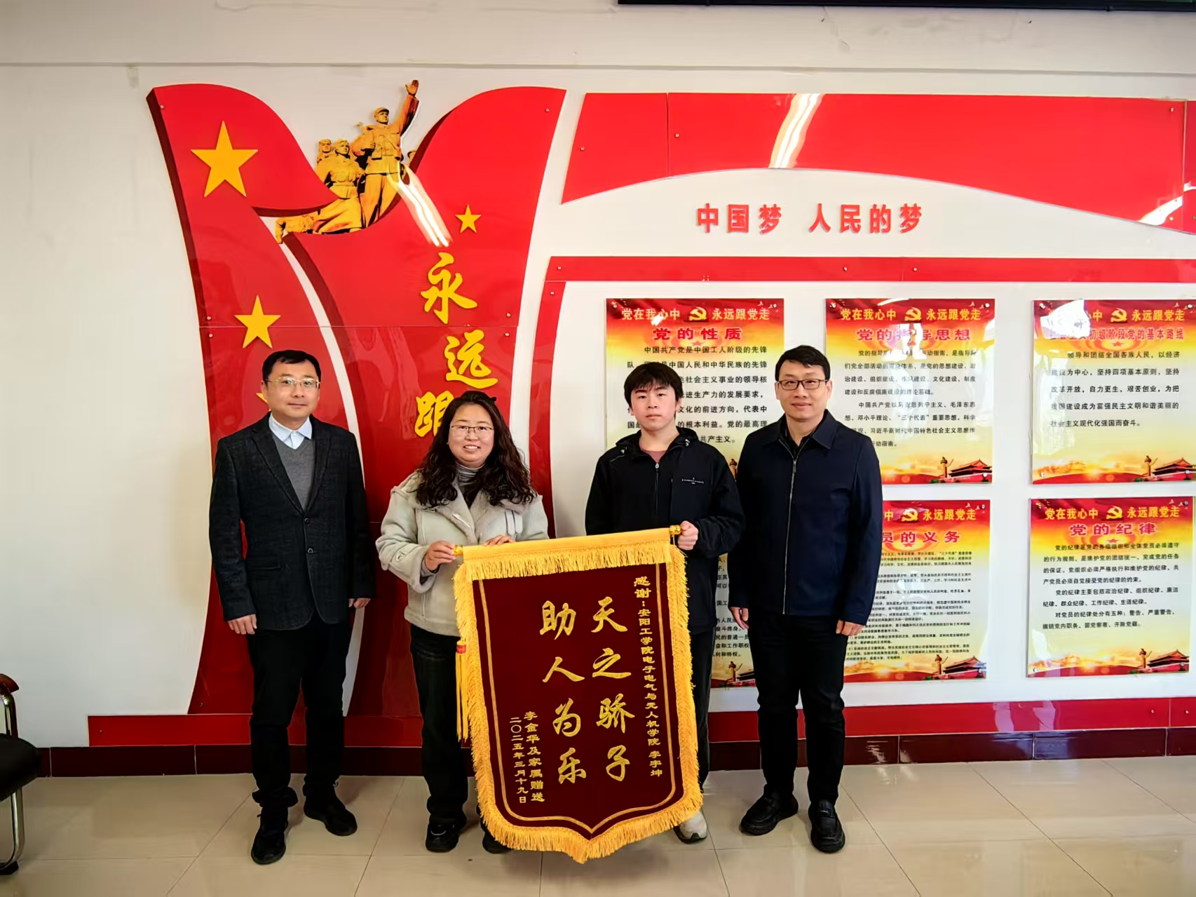 2025年3月19日上午,3044永利集团集团电子电气与无人机公司洋溢着温暖与感动:一位安阳市民专程来到公司,向2024级电气工程及其自动化专业的员工李宇坤赠送锦旗,以此表达对李宇坤善举的诚挚谢意。