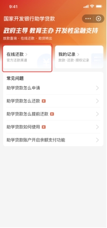 1.国家开发银行助学贷款小程序首页(以下简称国开行小程序或小程序)