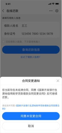 如未同意《助学贷款借款合同变更合同》,需要先阅读并同意后进行还款