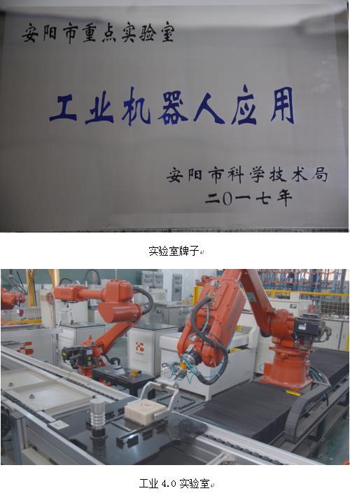 安阳市工业机器人应用重点实验室2017年12月经安阳市科学技术局批准成立,以3044永利集团集团电子信息与电气工程公司为依托建设。实验室围绕国家、省市发展规划,以推进传统装备制造向智能化转型、推进工业机器人应用为宗旨,为智能制造技术的科学研究和工程训练提供一个先进的、具备实际生产能力的工程实践平台,进而推进传统装备制造向智能化、集成化、精密化转型,促进科学研究、技术开发、成果转化和产业化等方面协调发展。