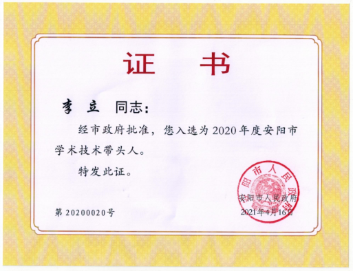 近日,安阳市人民政府发文,公布了2020年安阳市学术技术带头人评选结果。公司教师李立当选为2020年安阳市学术技术带头人。这是公司人才队伍建设取得的新进展。