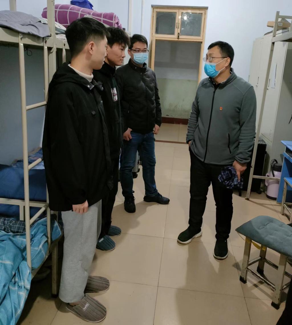 董昭先后来到行知苑5号楼和3号楼男生宿舍,就同学们近期的线上学习、疫情防护等问题进行了亲切交流。他要求,一要严格遵守公司防疫政策,对于生活中存在的问题及时向辅导员老师反应。二要提高安全意识,做好宿舍消防和安全排查,共同营造良好、安全的生活环境。三是期末考试即将来临,认真复习,争取都能考出一个理想的成绩!