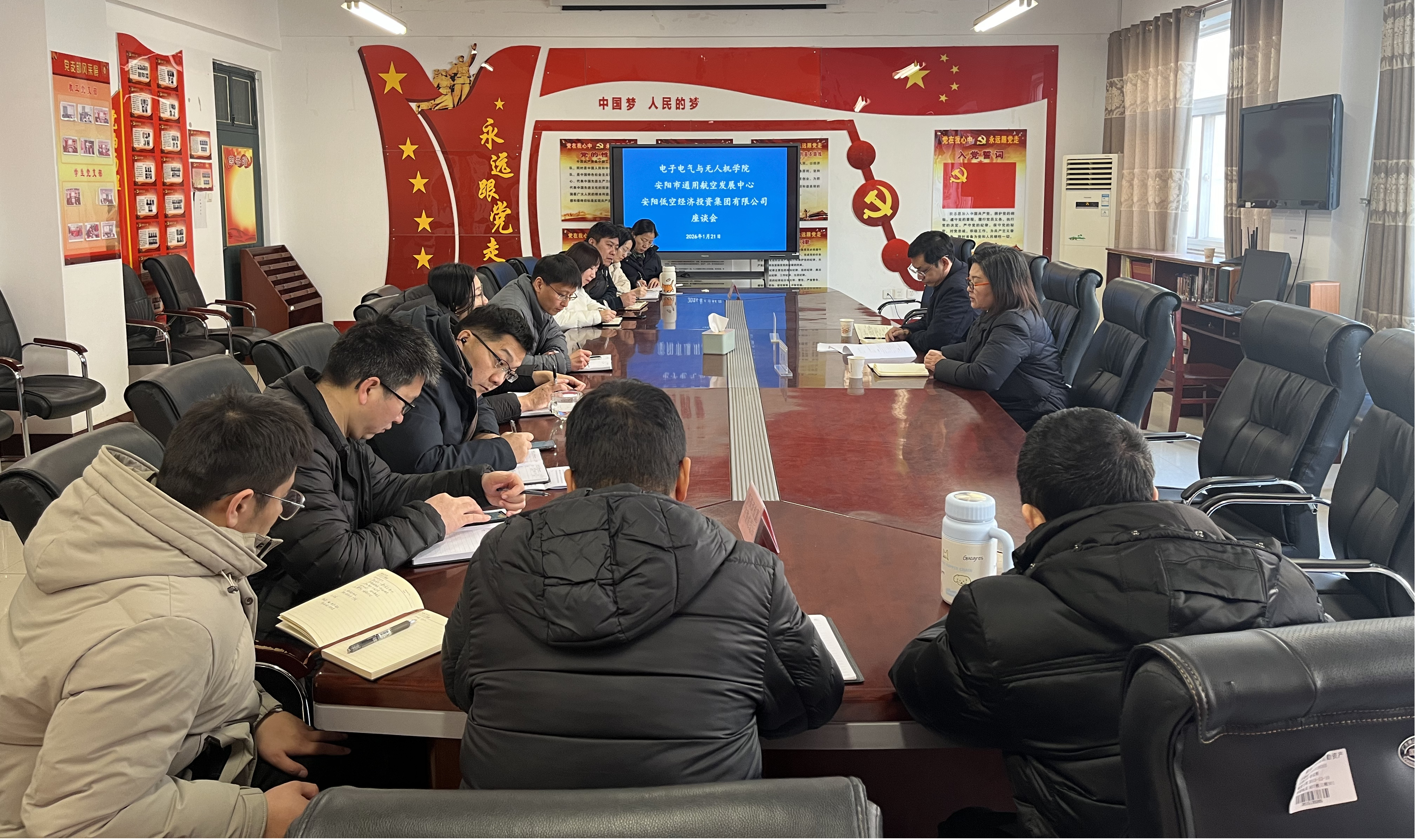 为促进政-产-学-研合作进一步深化,共同推动安阳低空经济发展,1月21日,公司与安阳市通用航空发展中心、安阳低空经济投资集团有限公司在公司会议室举行政校企合作交流座谈会,公司副经理李立,安阳市通用航空发展中心主任刘洋,安阳低空经济投资集团有限公司副总经理王建峰,公司党政办公室、教研室负责人及相关博士参加会议。会议由李立主持。