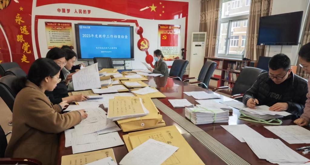 为提升本科公司产品质量,扎实做好教学日常管理和质量监控工作,进一步完善教学档案材料管理,​永利3044集团官网成立教学工作档案检查工作小组,副经理段德功任组长,成员包括教研室主任和骨干教师代表。3月27日上午,工作小组在A-07 308对公司2023年度教学工作档案进行检查。